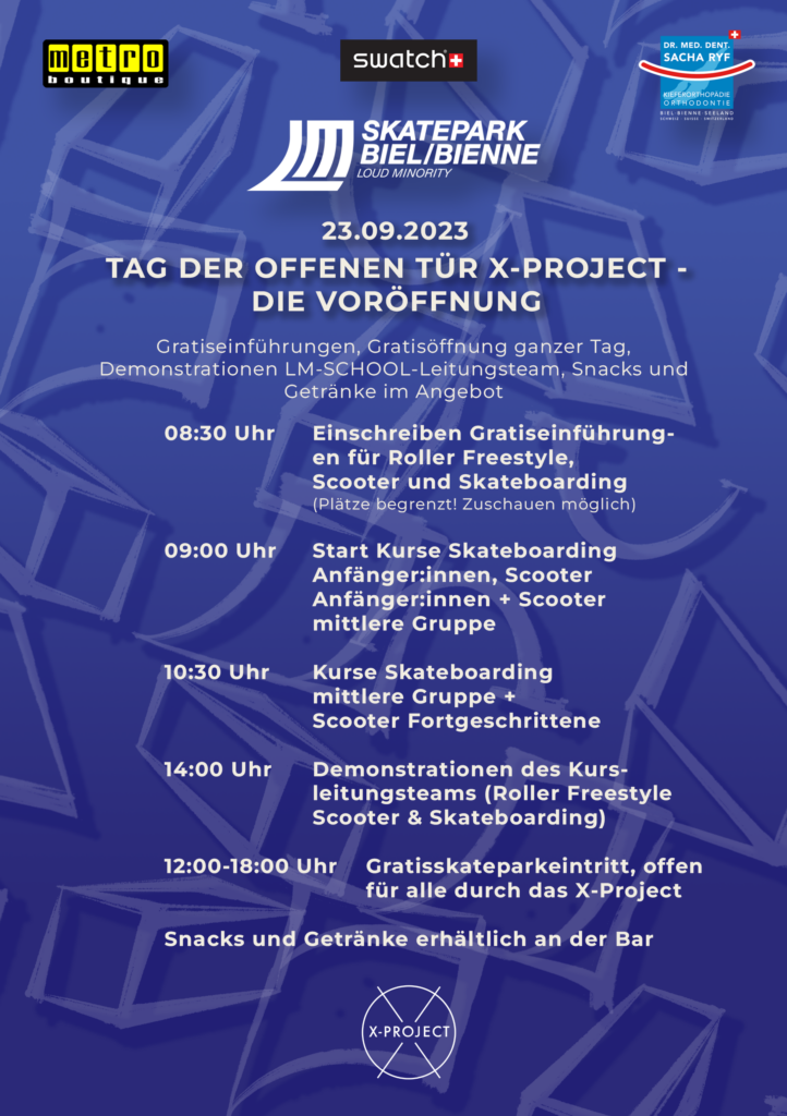 Am 23.September 2023 ist der Tag der offenen Tür des X-Projects! Wir machen einen Teil des Programms wie auch eine Voröffnung ab 9:00 Uhr morgens!